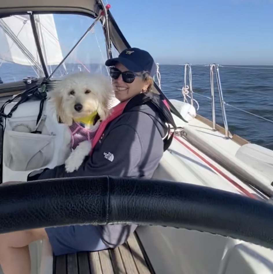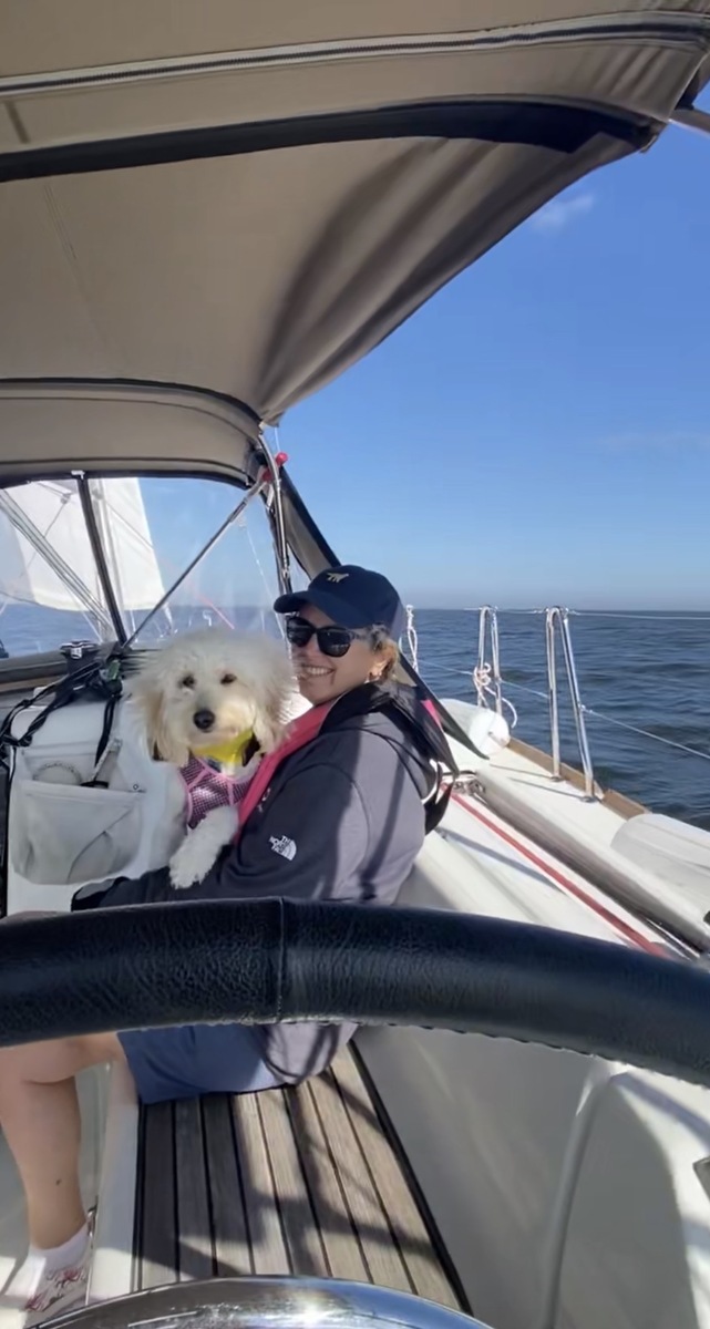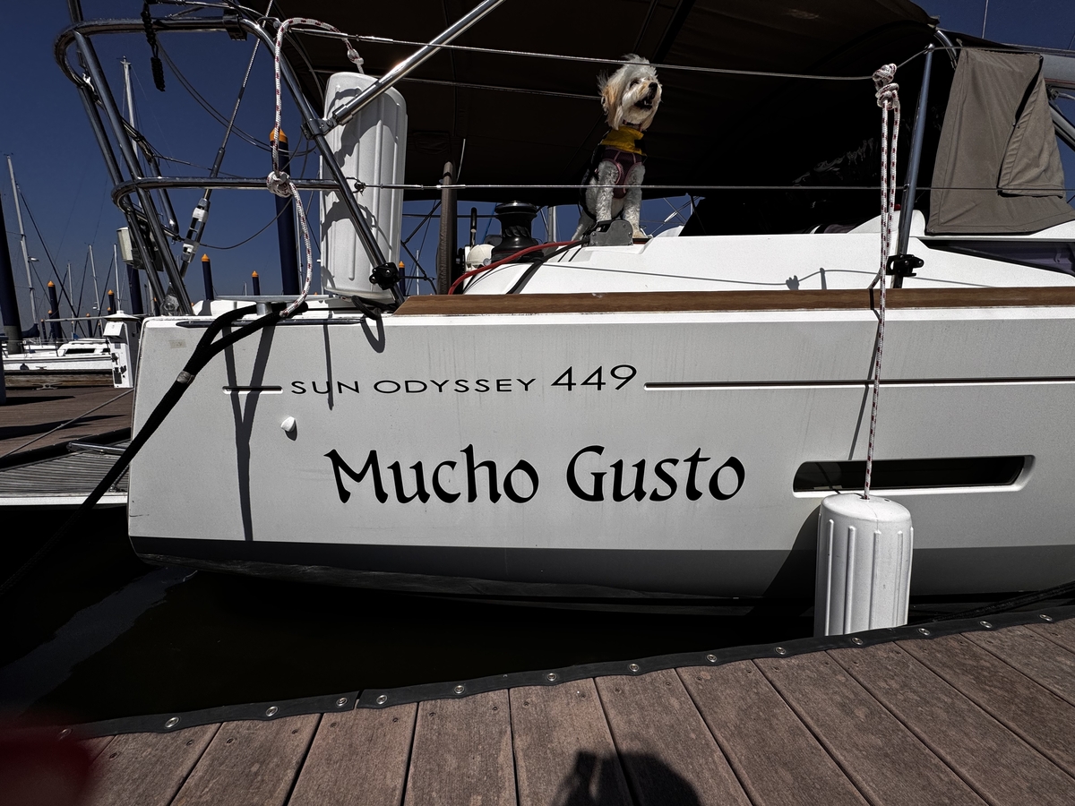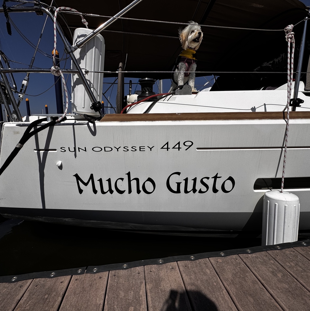 Early sail on the new boat in Galveston Bay with Saylor, the sailing dog!