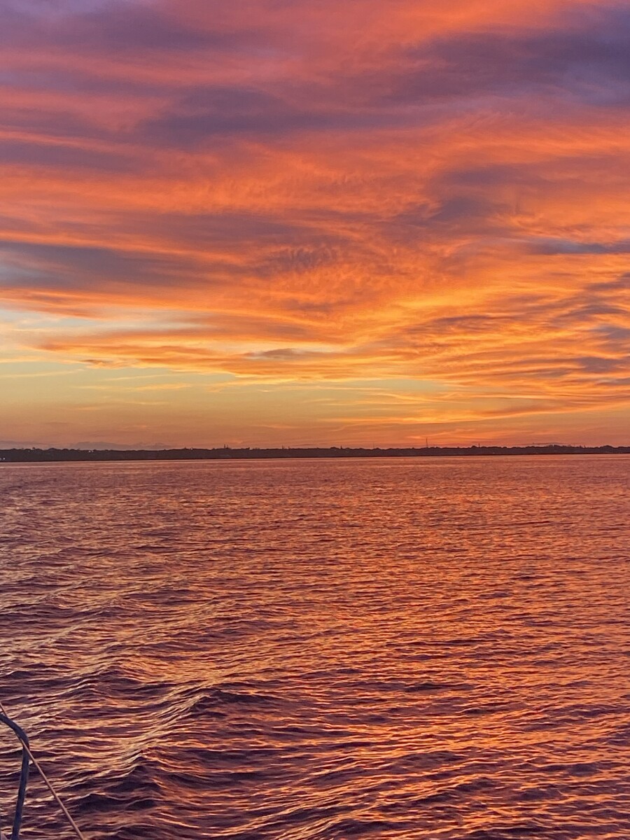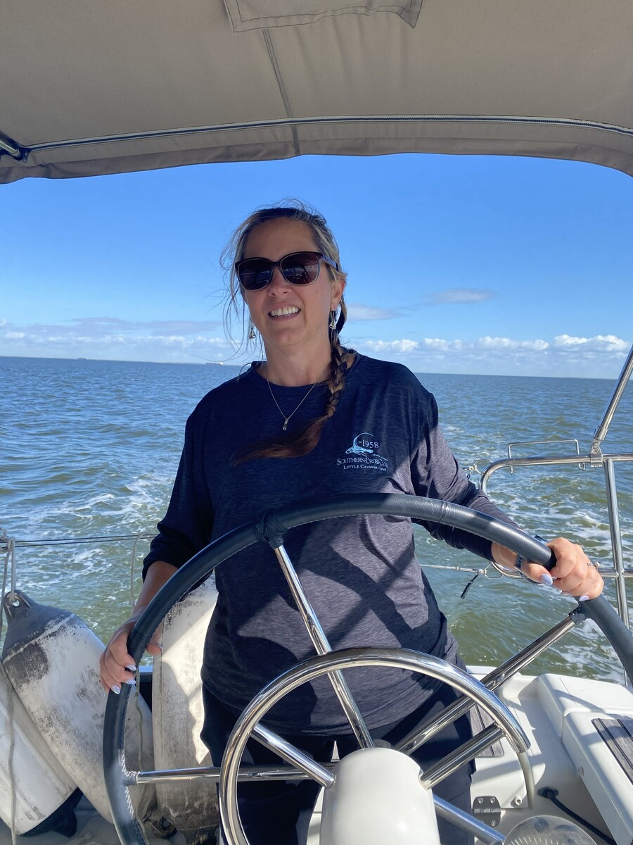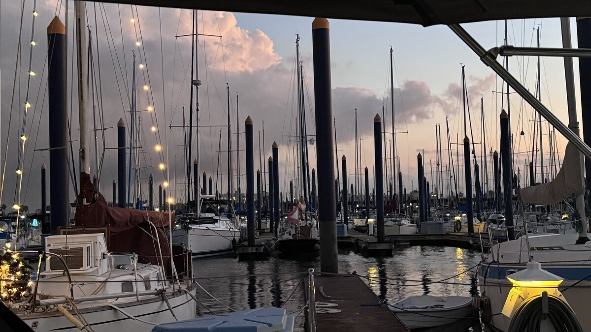 Early sail on the new boat in Galveston Bay with Saylor, the sailing dog!